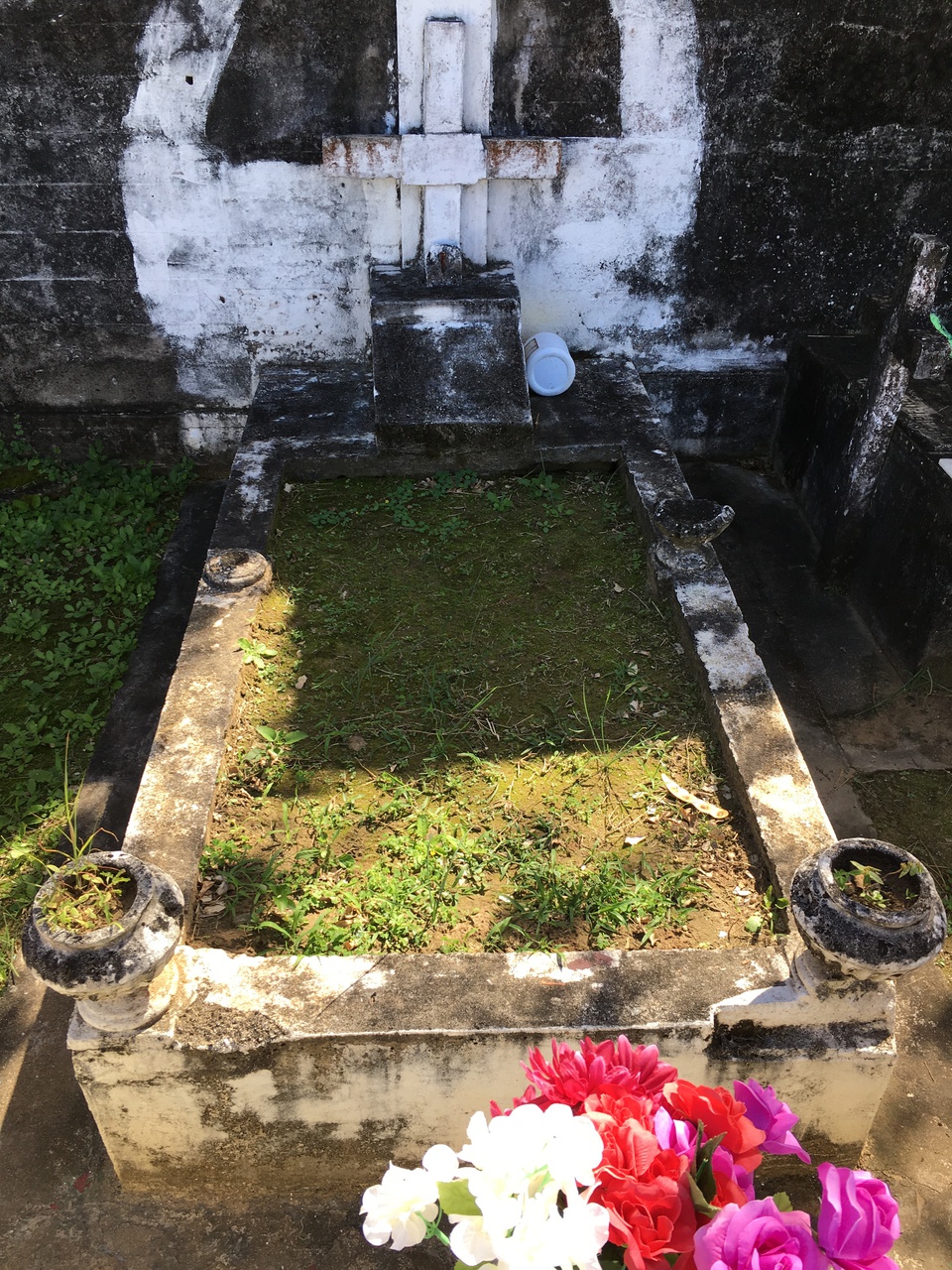base cemento, cruz, tiestos rotos